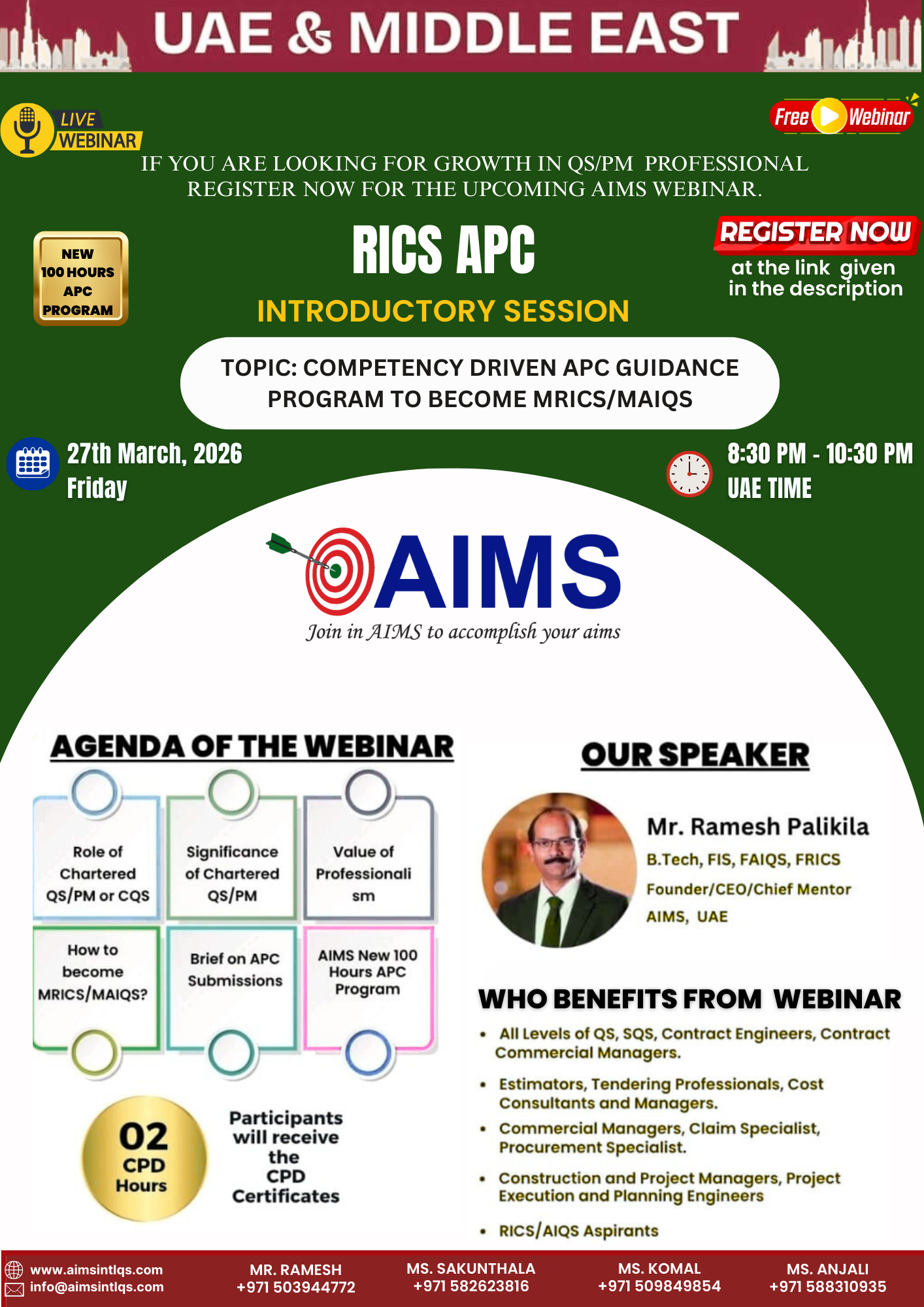 Appropriate guidance, reference materials, mock interviews and above all consistent motivation really helped me to get through the assessments and finally to become a successful chartered Quantity Surveyor. Thank you Mr. Ramesh & AIMS for making this happen.