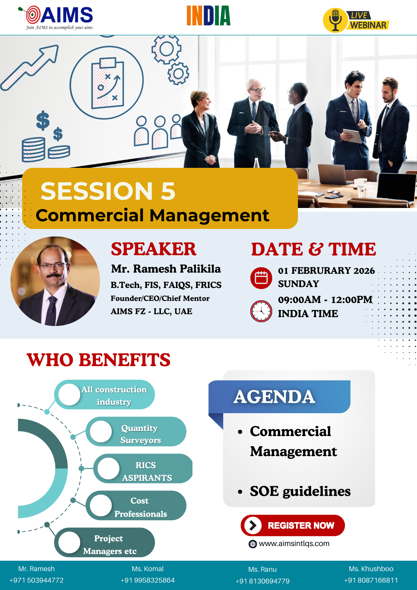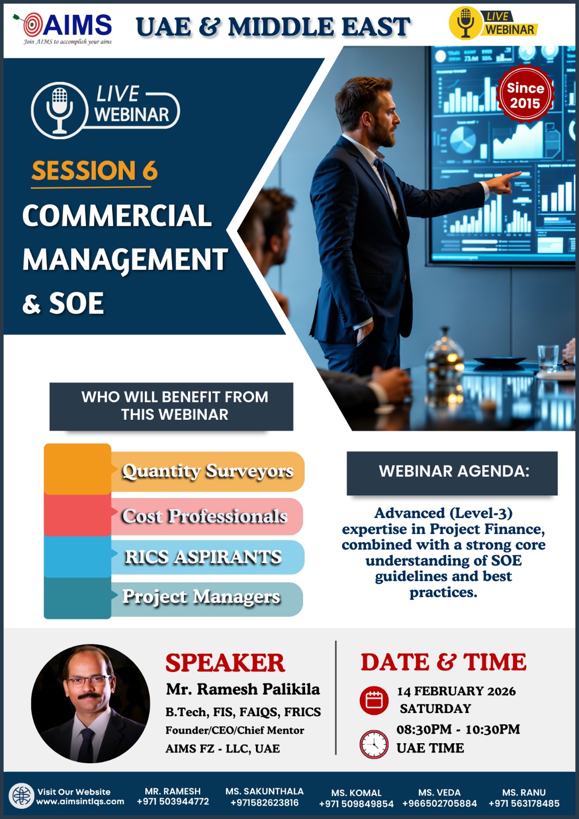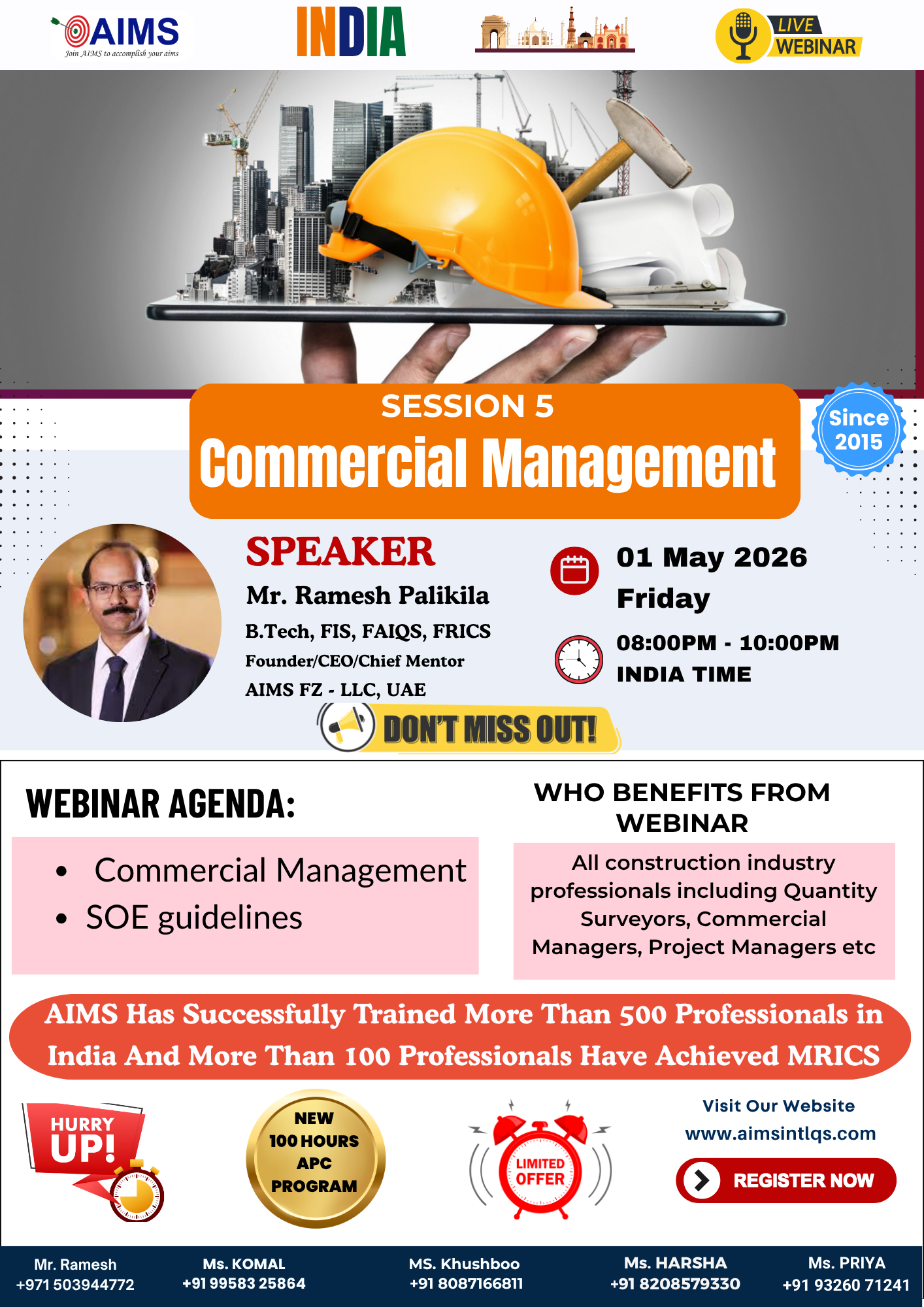 By then, I was delighted to learn that Mr. Ramesh had begun providing extensive guidance programs for APC aspirants. I didn’t have a second thought and grabbed the opportunity to join AIMS. The prime factor being the belief in the great mentor Mr. Ramesh - his passion of teaching, and his strong vision to build highly competent construction industry professionals.