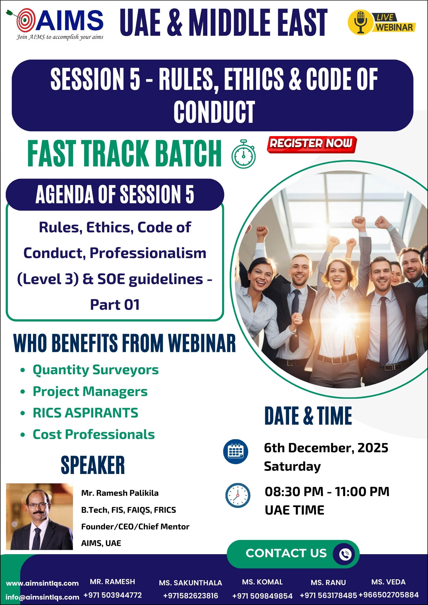 By then, I was delighted to learn that Mr. Ramesh had begun providing extensive guidance programs for APC aspirants. I didn’t have a second thought and grabbed the opportunity to join AIMS. The prime factor being the belief in the great mentor Mr. Ramesh - his passion of teaching, and his strong vision to build highly competent construction industry professionals.